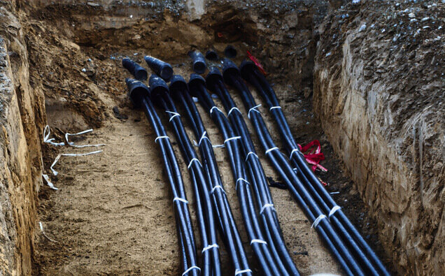 Expert installation of underground mains cabling from network pillars to metre boxes with correct segregation and protection per distributor regulations.